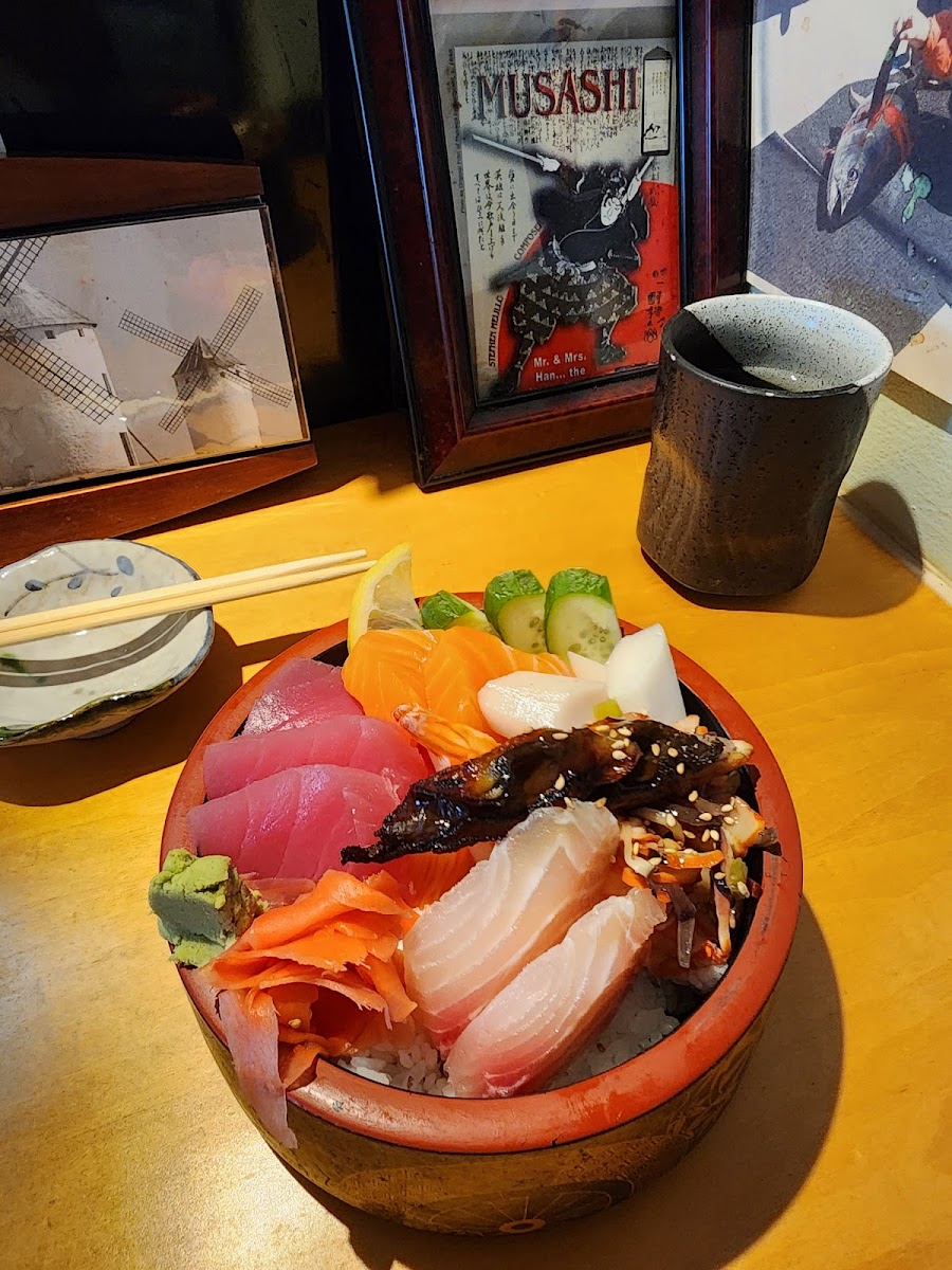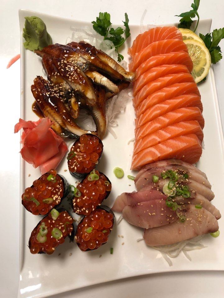 This place is probably the best sushi place that I ever have in the state. The sushi and sashimi look very well made and delicate. The taste is fresh and delicious. Every bite its just feel like they put their heart in it, very thoughtful and beautiful. I mean look at that thick salmon .They deserved 5 stars in every way! I would recommend this place