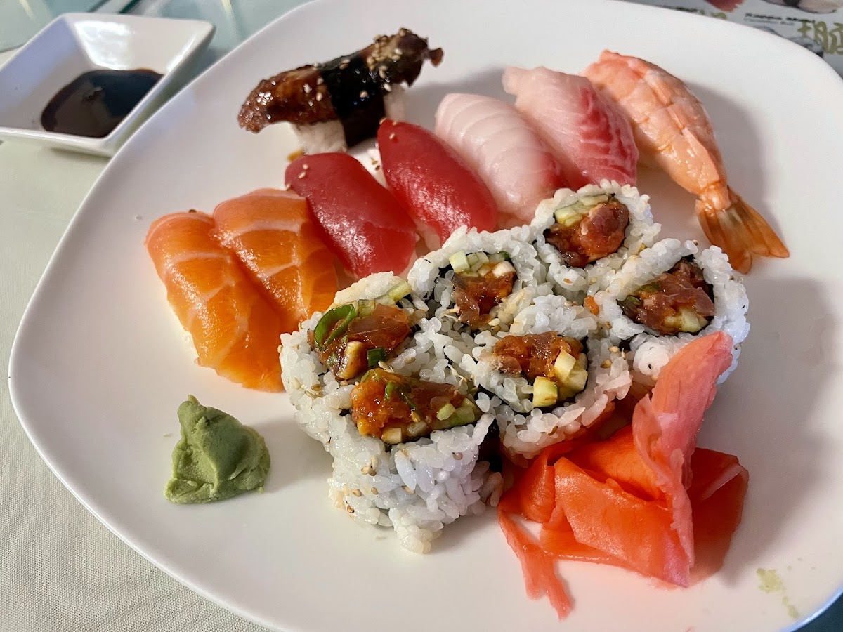 Me and my friend came here on accident and i’ve never been more happy with a communication mistake. we both got the sushi & sashimi dinner and it was AMAZING! Our server was so kind, the salmon was SO buttery, and white tuna was out of this world. the sushi chef was smiling the entire time. the music and atmosphere was fantastic!! 100% will return 10/10 would recommend!