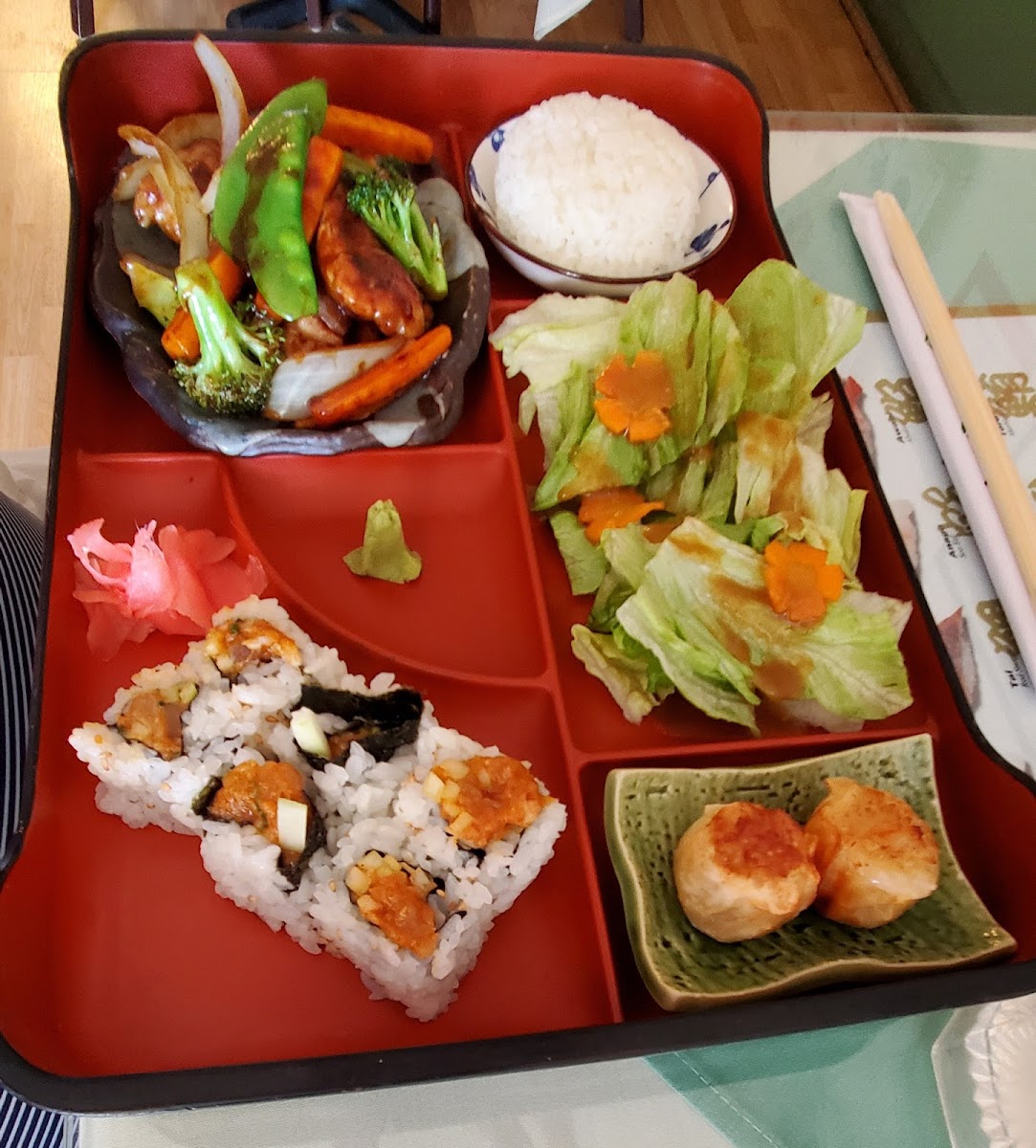 The place is authentic and delicious. We have enjoyed the Newport News Roll, Philadelphia roll, California Roll, Dragon roll, bulgogi roll, and the lobster roll. We recommend the shrimp dumplings, both steamed and fried. The sushi and sashimi are prepared in the main dining, where all fried food and dinners are behind. Evertime u have visited, there's only one lady who does all service. She takes orders and delivers food. She answers calls and packs to go, and she cleans the tables. It seems to be a family affair. We recommend trying this small, but totally homemade, delicious, and inviting restaurant. Update: We tried the spicy salmon today, and it was delicious. There was a smoky flavor with the perfect amount of heat to still taste the salmon. The restaurant was busy with 30 minutes of opening. There was a wait but not too long for the food. I wouldn't suggest going if you have a half-hour lunch. We had another great experience.